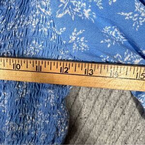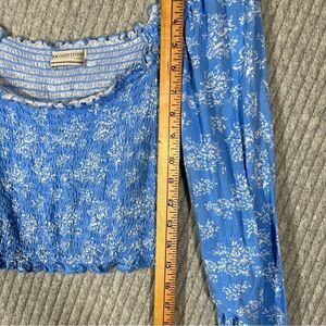 Urban Outfitters L Crop Top Long Sleeve Blue with White Flowers Stretch Light