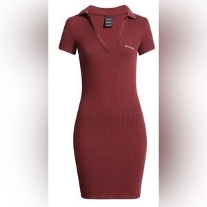 Let’s Frans Ribbed Polo Minidress In Burgundy