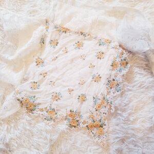 Stylish lace tank with floral trim. Features a tie-back design. Ideal for summer wear.