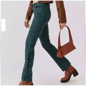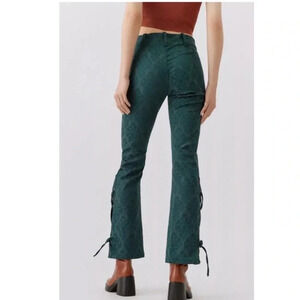 Urban Outfitters Lace Up Dark Green Damask print pants