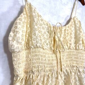 Urban Outfitters Large Riley Babydoll Mini Dress Sheer Ivory Floral Summer Girly