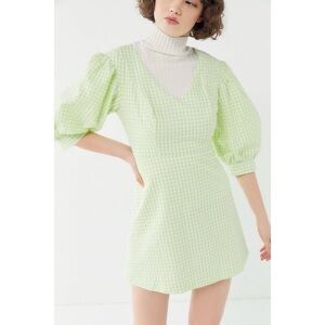 Urban Outfitters Lena Gingham Puff-Sleeve Minidress