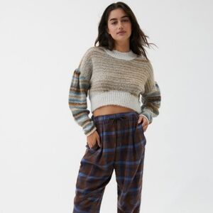 Urban Outfitters Lennon Sweater Mock Turtleneck Cropped Striped Drop Shoulder M