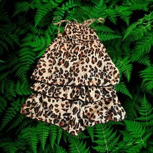Urban Outfitters Leopard print Ruffle Layered Tiered Halter Romper Size Med