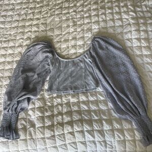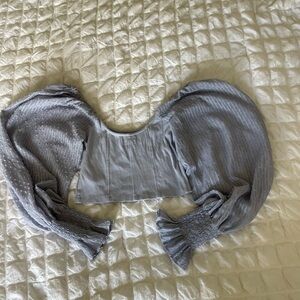 Chic puff sleeve top. Light blue with textured fabric. Perfect for casual outings.