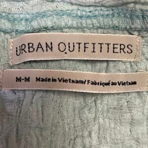 Urban Outfitters Light Blue Ruffle Crinkled Button Stretch Crop Top Blouse Sz M