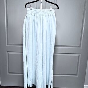 Chic light blue wide leg pants. Comfortable and stylish for any occasion.
