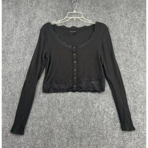 Urban Outfitters Light Weight Black L Cardigan Sweater Lace Button Up Coquette