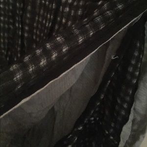 Black woven grid pattern on one side and solid gray on the reverse, slightly worn but great condition.