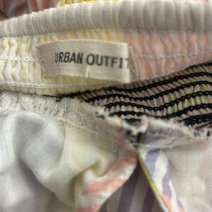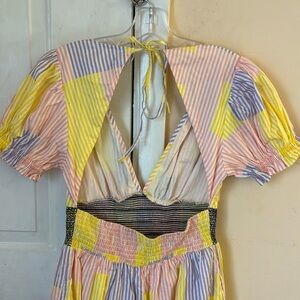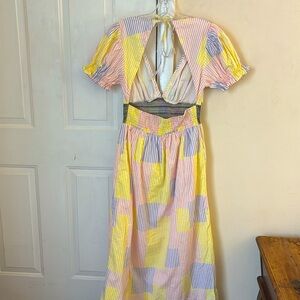 Urban Outfitters Womens Liliana Side Slit Midi Dress Puff Sleeve pastel patchwork striped
