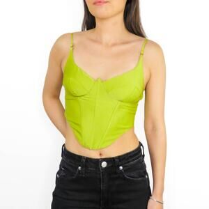 URBAN OUTFITTERS Bright Green Lime Green Camisole. Super Cute Lingerie Style Bustierre Cami Tank Top with Point on Bust. Y2k Vibrant Cute Top. It's Giving Euphoria