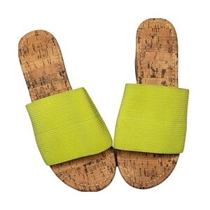 Urban Outfitters | Lime Green Slip On Open Toe Cork Wedge Sandals Women's 6