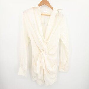 Urban Outfitters Lioness Romper Size Small Cream Off White Wrap Style Ruched Twist Long Sleeve V-Neck Collared NWT