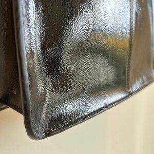 Sturdy black tote from Urban Outfitters. Made from 100% polyurethane. Soft and smooth - think patent leather with an ever- so -slight crinkle. It stands on its own, spacious
