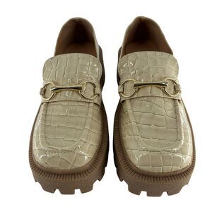 Urban Outfitters Loafers Womens 7 Cream Faux Patent Leather Chunky Platform NEW