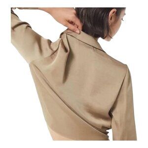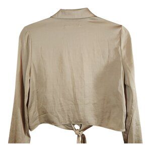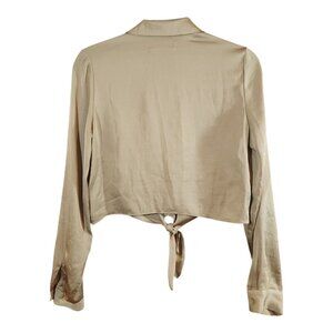 Urban Outfitters Logan Cropped Satin Tie-Front Button-Down Top Women's Small