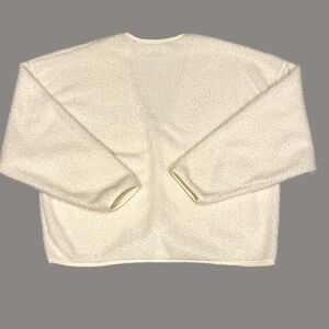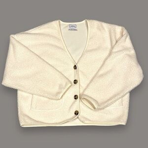 Urban Outfitters Lola Fleece Cardigan Cropped Boxy Button Up Pockets Ivory LG
