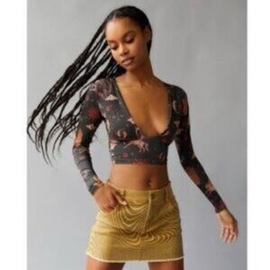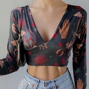 Urban Outfitters Long Sleeve Plunge Neck Crop