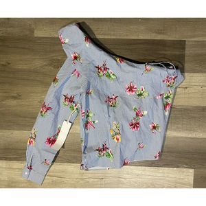 Urban Outfitters Lumiere NWT Floral Striped One Shoulder Blouse, Size Large