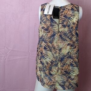 Urban Outfitters Lumiere Tropical Sleeveless Tiered Ruffle Blouse size Small