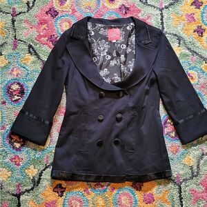 Urban Outfitters Lux Double Breasted Satin Trim Jacket Black XS Y2K