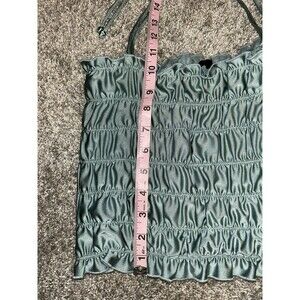 Urban Outfitters M Out From Under Jessica Smocked Tie Strap Tank Top Crop Green