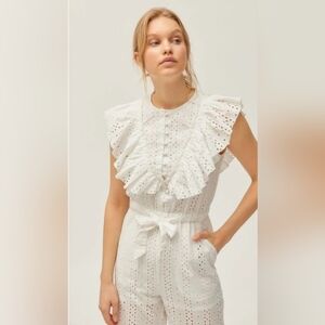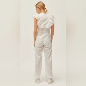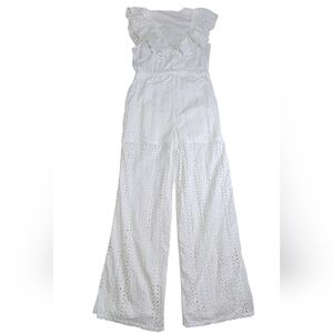 Urban Outfitters Magnolia Eyelet Ruffle Jumpsuit Size Medium White OB974249