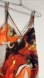 Eye-catching slip dress with a swirl pattern. Features orange, black, and white hues.