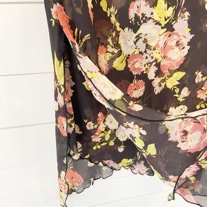 Urban Outfitters | Marisol Black Floral Hanky Hem Midi Skirt Size Medium