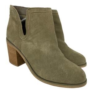 Urban Outfitters Maude Suede Ankle Boots Block Heel Bootie size 7 Tan Taupe