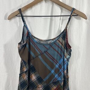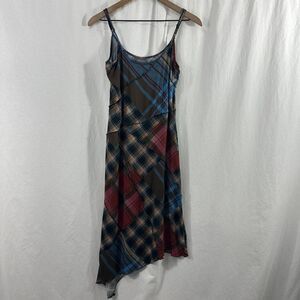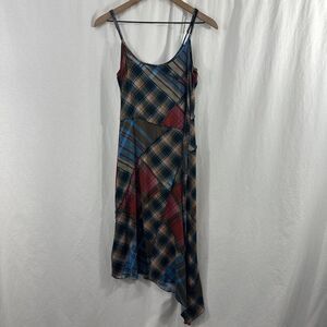 Urban Outfitters Maureen Patchwork Plaid Asymmetric Strappy Slip Dress Womens M