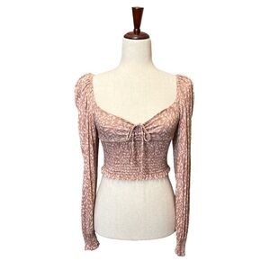 Urban Outfitters Mauve Floral Long Sleeve V-Neck Crop Top. Size XS #954