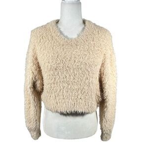 Urban Outfitters Medium Women's Cream Cuddle Up Crew Neck Cropped Sweater