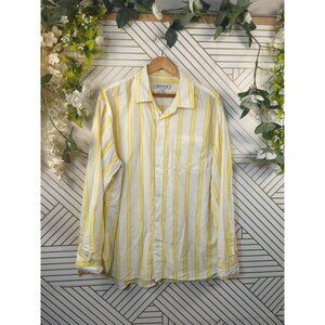Urban Outfitters Men’s COREY Button Up Long Sleeve Shirt in Yellow Stripe Size L