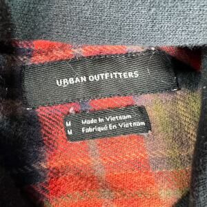Urban Outfitters Mens Medium Bleached Hood Flannel Button-Down Shirt Red Orange