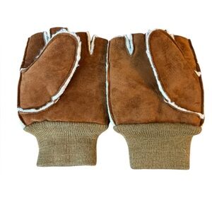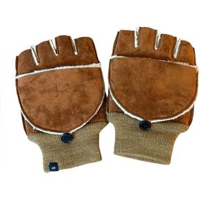 Pre owned like new. No flaws or signs of wear. Really nice suede Sherpa lined convertible gloves. One size.
