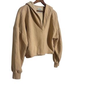 Urban Outfitters Millie Deep V Pullover Cropped Hoodie Tan Size Small