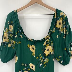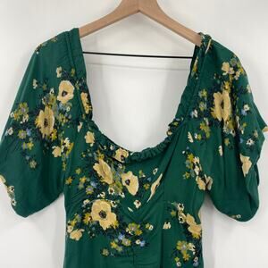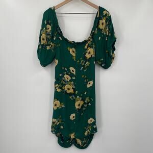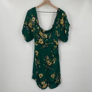 Urban Outfitters Mini Dress Floral Print Off Shoulder Ruched Green Womens 0 UO