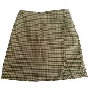 Urban Outfitters Mini A Line Plaid Check Tan Blue Black Skirt Front Notch Slit