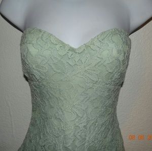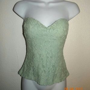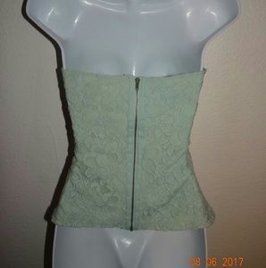This item is used but still in good condition. Urban Outfitters Pin & Needles Mint Green Lace Top in woman's size small. Like new. It has a long zipper closure on back that unfasten all the way. Little to no stretch. Beautiful mint green color.