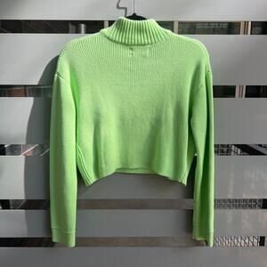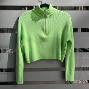 Urban Outfitters mint green ribbed knit cropped half zip pullover sweater. Turtleneck with a half zip front. Long sleeves. Bright mint green. Size medium - 24" pit to pit; 9.5" length from pit; 17.5" total length; 27" sleeves.
