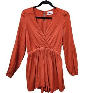 Urban Outfitters Mona Surplice Long Sleeve Romper Sz Medium Rust Orange Red