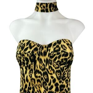 Urban Outfitters Motel Multicolor Leopard Animal Strapless Choker Bodysuit Top M