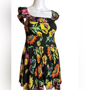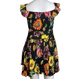 Urban Outfitters Motif Floral Off The Shoulder Mini Dress Black Yellow Size XS
