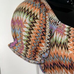 Urban Outfitters Multicolor Zigzag Patterned Puff Sleeve Crop Top Size Medium