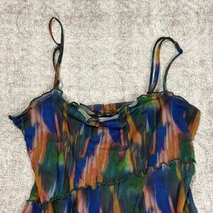 Urban Outfitters Multicolored Sheer Mesh Ruffle Cami Dress S