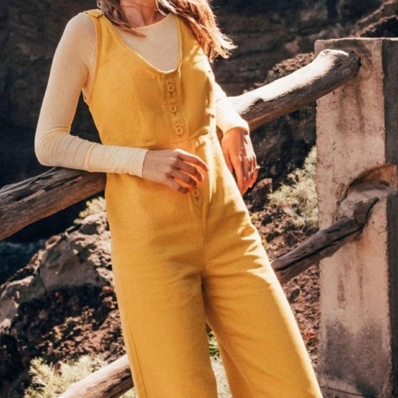 Urban Outfitters Mustard Denim Wide Leg Jumpsuit / Overalls Size Medium