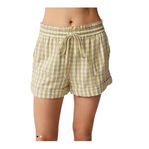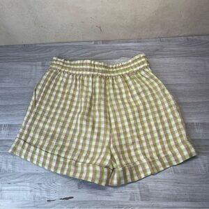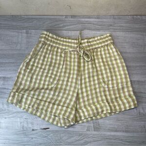 Urban Outfitters Mya Linen Blend Pull-On Green Yellow Plaid Shorts Womens Size S