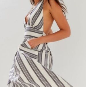 Urban Outfitters NWT Betsey Stripe Linen Halter Dress.
