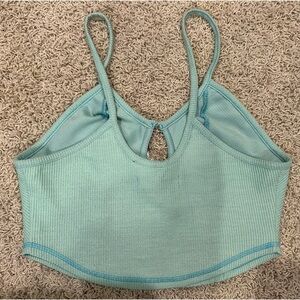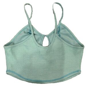 Add a pop of color to your wardrobe with this beautiful teal ribbed cami from Urban Outfitters. Featuring a button-front and strappy sleeves, this sleeveless top is perfect for those warmer days. The round neckline and cropped style give it a trendy, yet feminine touch. Made with a blend of polyester and spandex, it is lightweight, stretchy, and breathable, making it easy to care for and quick-drying. Ideal for the beach or a bohemian-inspired outfit, this cami is a must-have for any fashion-forward woman's wardrobe.